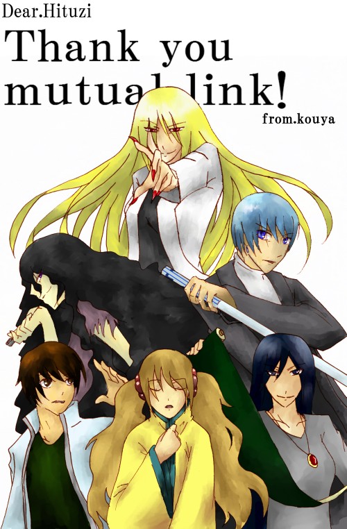 やんちゃ×爆走の羊さんへの相互絵です! はい。オリキャラ詰め合わせでございます(笑) 無駄に厚塗り風。その上デカイ。 何だか相互絵を描くたびに画像がでかくなっているのは気のせい・・・・じゃないですよね。 実はこれ、一人づつの立ち絵を組み合わせたみたいにしたかったんですが。 ・・・・・・・・・。 見えませんね・・・。そんな風には・・・orz 調子に乗って今後書く予定の小説のキャラまで描いちゃいました。 というか6人中4人がそれなのは気にしない方向で。 きっとその小説がUPされるのは来年になr( ゚∀゚)=◯)`Д゚)・;' ゴハッ いえいえ。何でもありません。 ではでは、こんなもんで良ければお持ち帰り下さいませ〜。 |