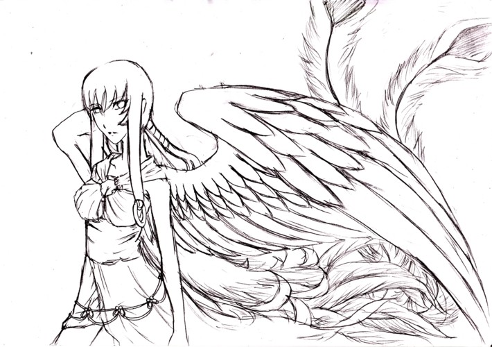 急に羽根のわっさわさ生えた人を描きたくなって描いたもの。
